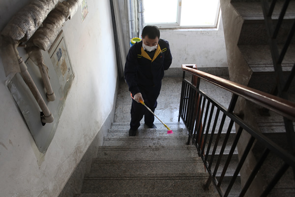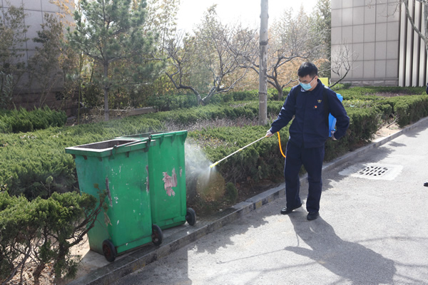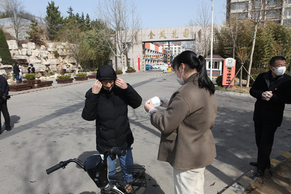 一到社區(qū),在社區(qū)的組織安排下,分成兩組分頭行動。第一組志愿者背起噴壺到居民小區(qū)消毒。第二組志愿者來到小區(qū)卡口,為工作人員及進出居民發(fā)放口罩。遇到個別沒有佩戴口罩的行人,立馬進行提醒,引導(dǎo)社區(qū)居民戴好口罩,做好自我防護,不影響他人。