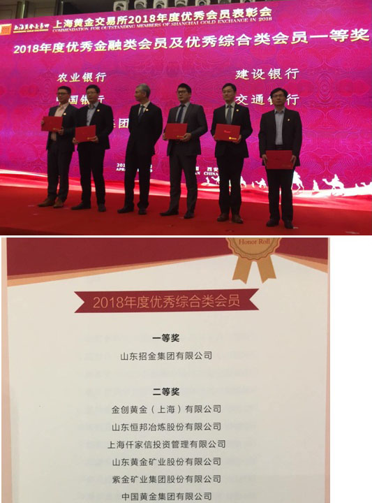 近日,上海黃金交易所2018年度優(yōu)秀會員表彰會在陜西西安落下帷幕。山東招金投資股份有限公司繼續(xù)蟬聯(lián)所有獎項中含金量最足的“年度優(yōu)秀綜合類會員一等獎”,并一舉奪得“年度最佳代理業(yè)務會員”、“最佳競價交易會員”、“詢價市場最具成長力機構”等獎項,公司總經理蔡建生獲頒“年度優(yōu)秀交易員”榮譽稱號。