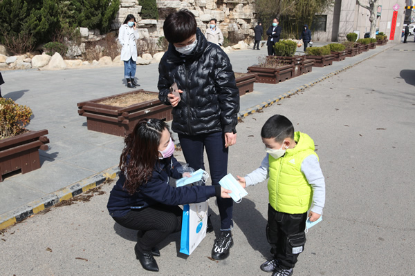 一到社區(qū),在社區(qū)的組織安排下,分成兩組分頭行動。第一組志愿者背起噴壺到居民小區(qū)消毒。第二組志愿者來到小區(qū)卡口,為工作人員及進出居民發(fā)放口罩。遇到個別沒有佩戴口罩的行人,立馬進行提醒,引導(dǎo)社區(qū)居民戴好口罩,做好自我防護,不影響他人。