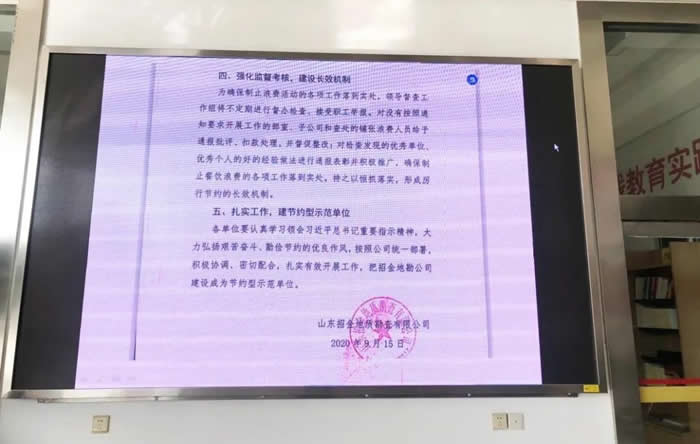 通過召開會議、大屏幕滾動指示文件等方式,提高廣大干部職工勤儉節(jié)約的意識,同時鼓勵廣大員工培養(yǎng)文明就餐好習慣,杜絕浪費,鼓勵光盤行為。