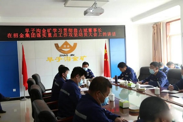 3月25日,早子溝金礦組織中層以上干部學習翁占斌董事長在招金集團落實重點工作攻堅動員大會上的講話,動員